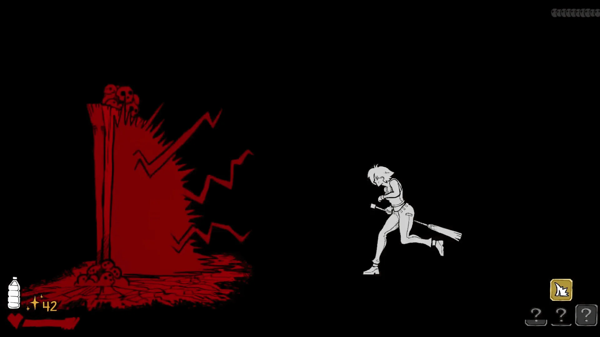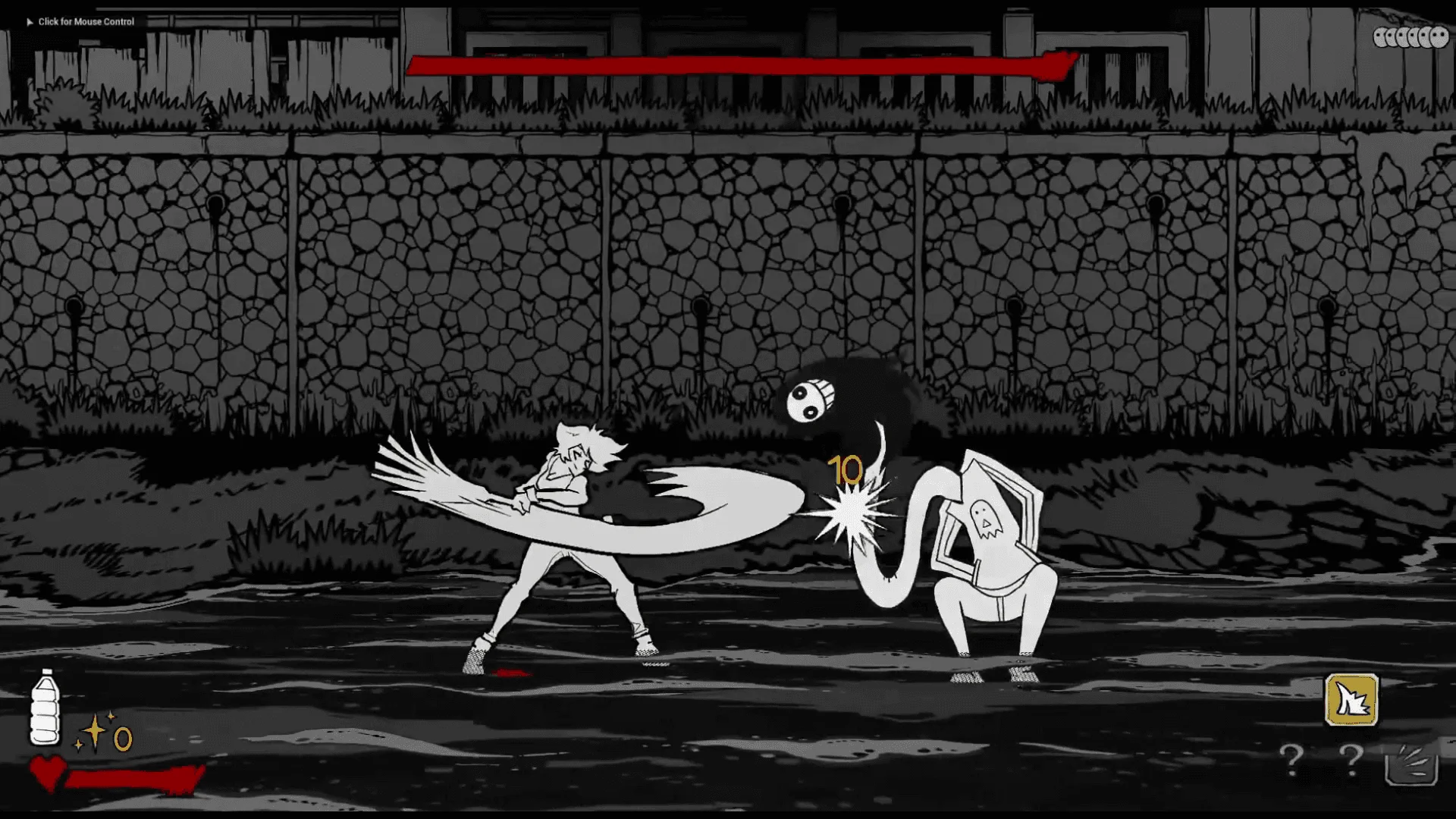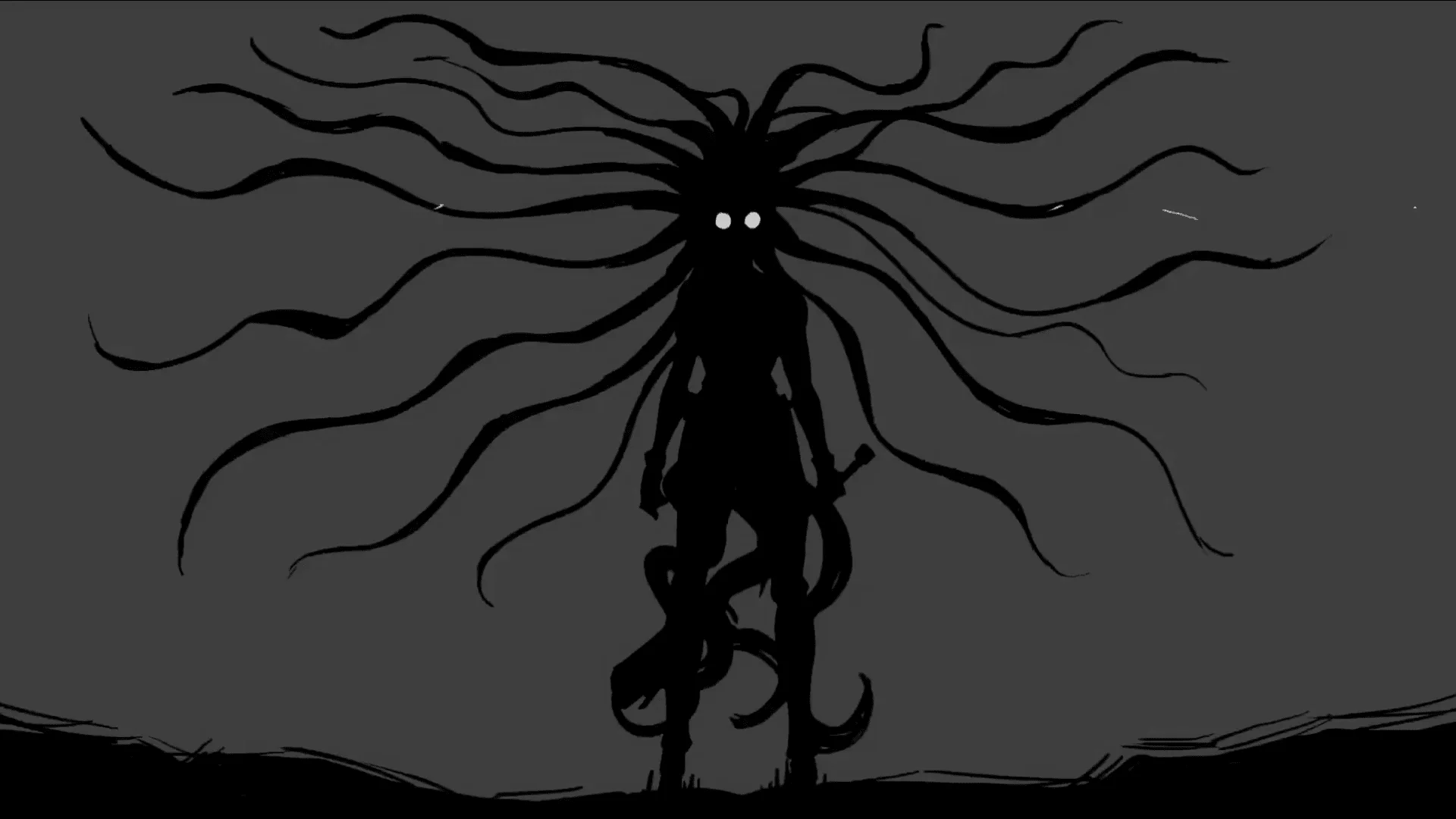 Manga-esque style Hand-drawn 2d sprites capture the mood of a black-and-white Manga-esque.