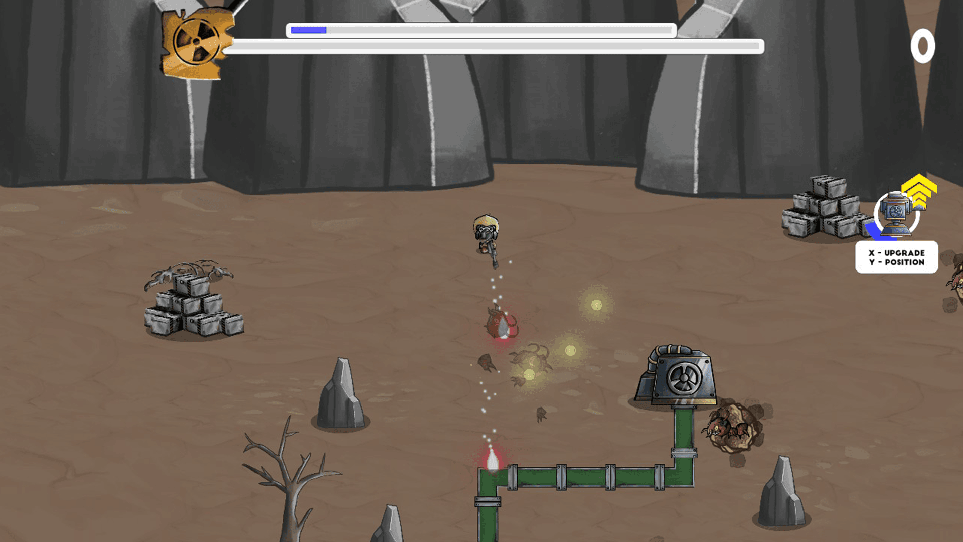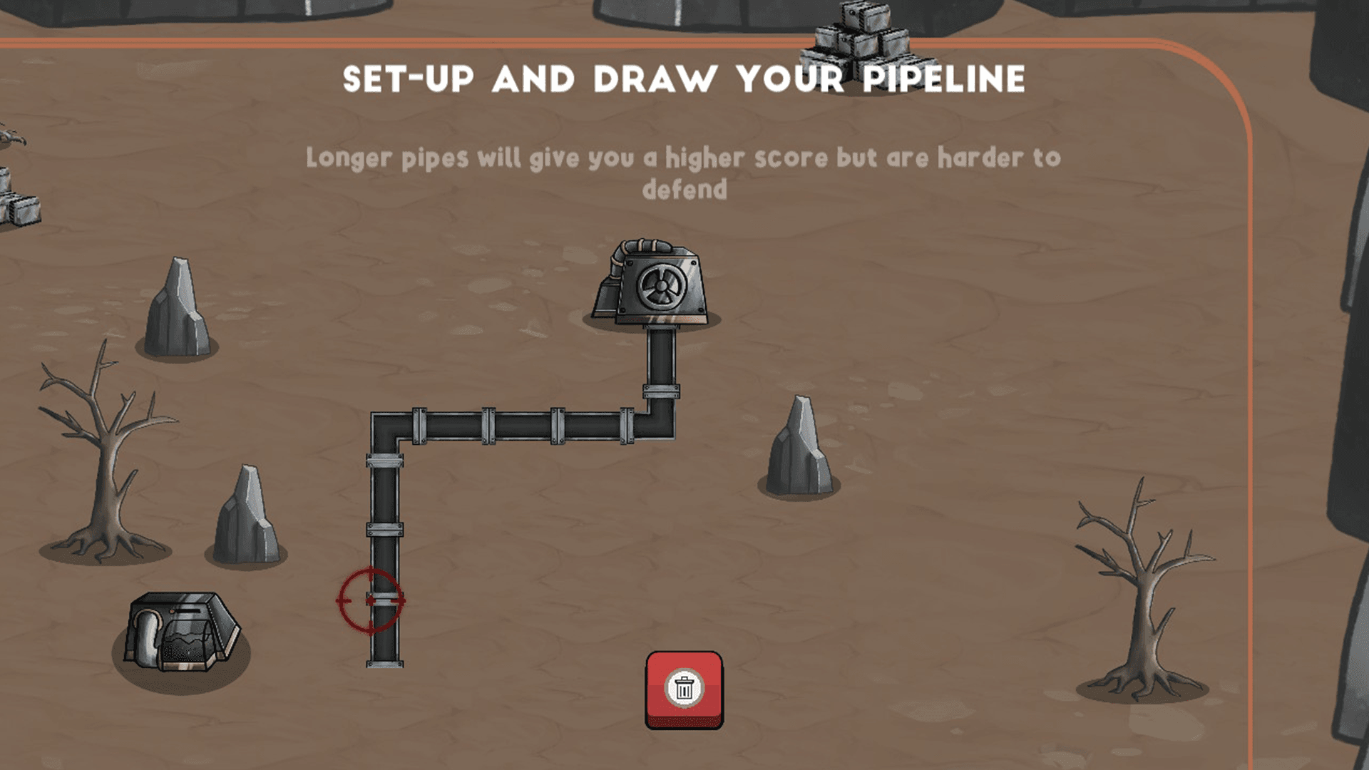 Here comes the solution: risking the lives of too many heroic young technicians already the humans started to train and arm the pipeline crews to defend & repair the instalations. With the help of a potent arsenal of destructive weapons and precision engineering resulting in deadly gun towers, the brave technician-soldiers can do their job with at least a healthy 2% chance of survival… (up from 0,000002% before).